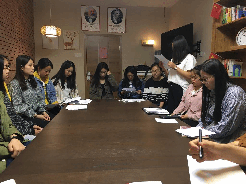 2018年5月9日下午18:00时工商二支部全体成员在周晨老师的带领下在未知研习社开展以诵读《共产党宣言》为主题的支部活动。 会议第一项由支部四名同志对《共产党宣言》原文进行诵读,其他同志聆听学习,会议第二项由支...
