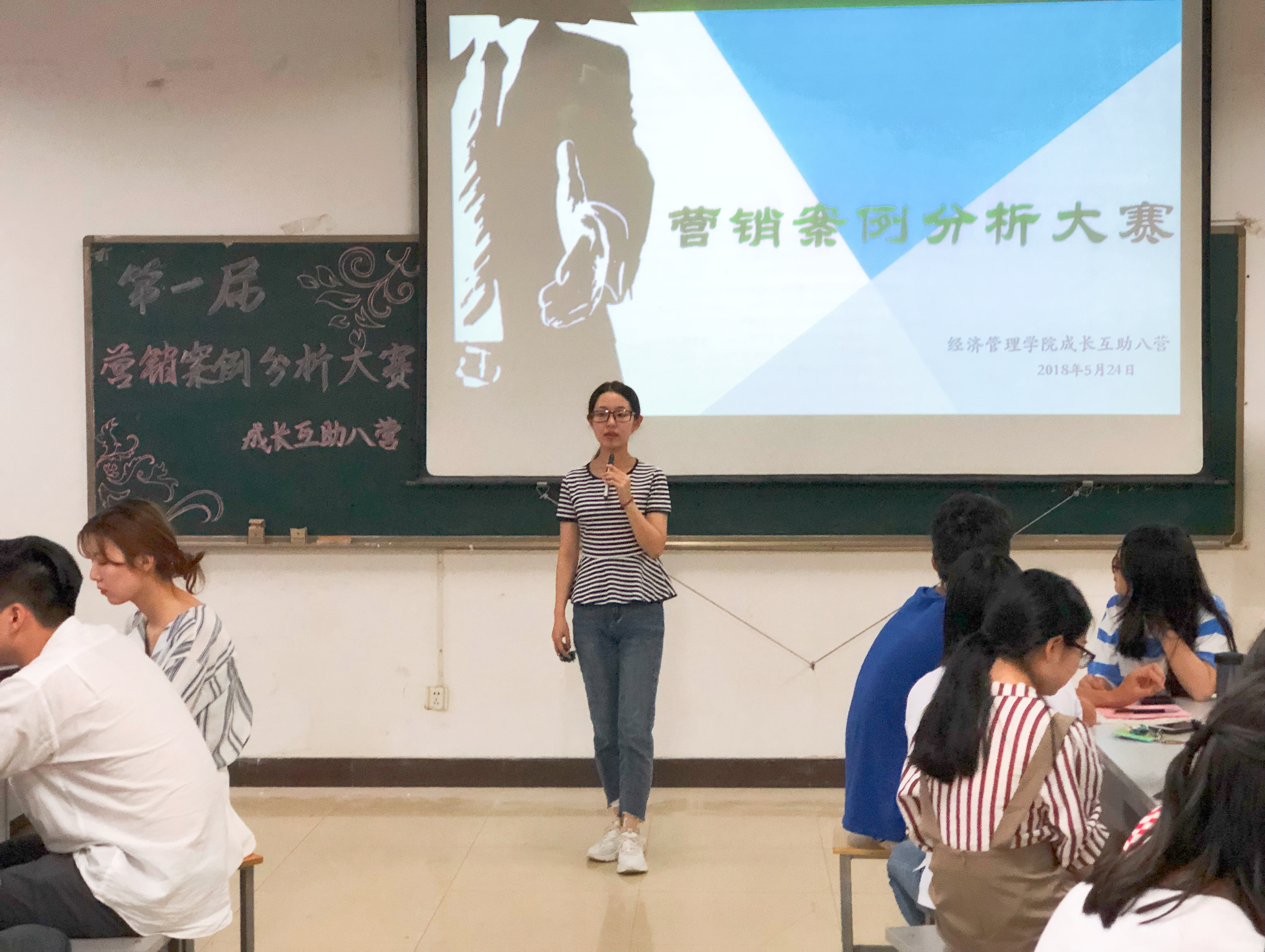 2018年5月24日晚19:00,黄色短剧 成长互助八营主办的第一届营销案例分析大赛在教5-506火热开赛。成长互助八营指导老师牟雪艺和八营全体成员参与了此次大赛。 比赛伊始,两位主持人介绍了本次大赛的活动背景和目的...