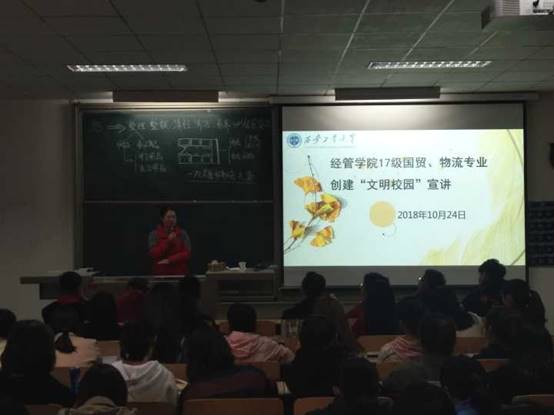 2018年10月24日下午,黄色短剧 曲峡老师为17级国贸、物流专业学生在教2-305举办了创建“文明校园”的宣讲会。 讲座一开始,老师给我们讲述了她最近查宿舍所得到的反馈,她用实际的例子让我们懂得宿舍是大...
