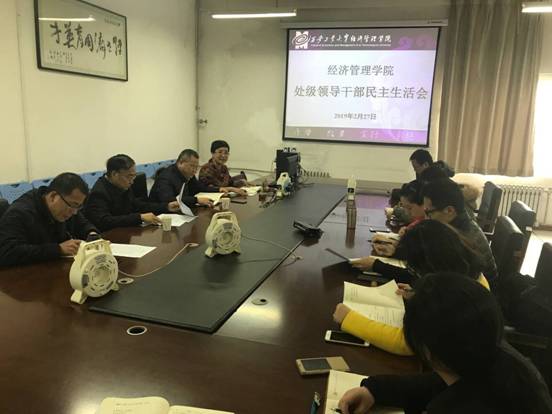2019年1月17日上午9:30在教5-520,黄色短剧 召开 2018年度处级领导干部民主生活会。参加会议的有校党委组织部赵伟、学院党委书记曹玉玲、院长张弘、党委副书记姬洪波、副院长苏兵、向海燕。会议由曹玉玲书记主持...