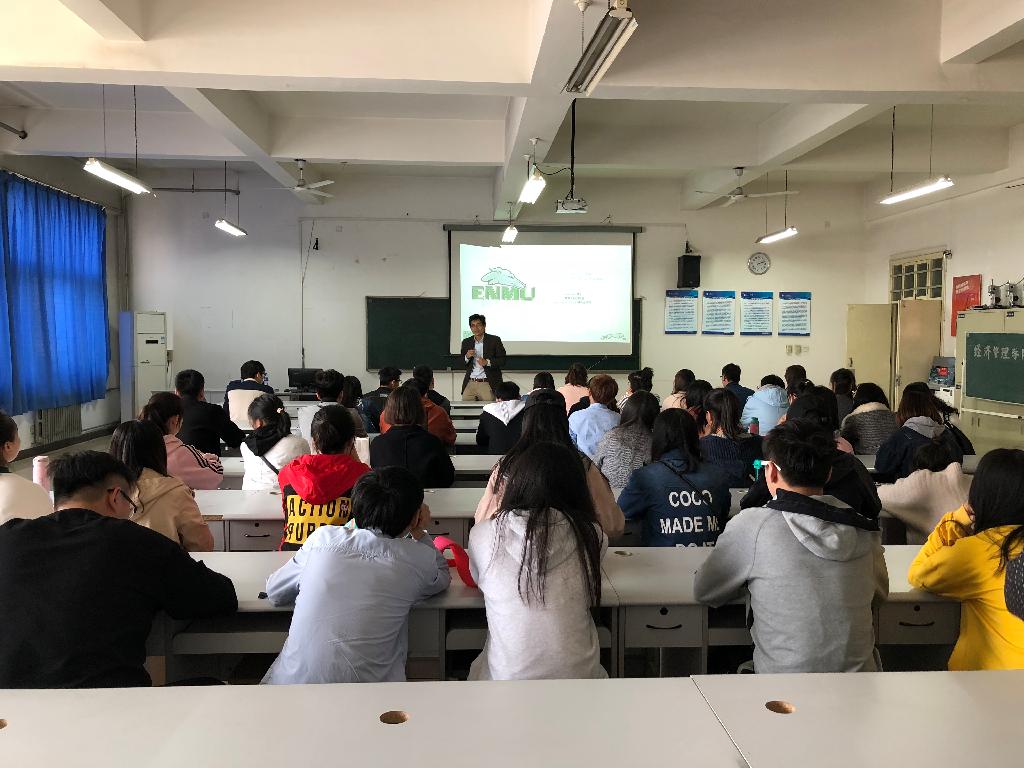 为提升黄色短剧 国际化水平,2018年2月23日,黄色短剧 邀请到美国东新墨西哥大学Michael Zhang教授来院宣讲国际交流项目。宣讲会在教5—506举行,2015级和2016级部分学生到场参加。 会议开始前,Michael Zhang教...