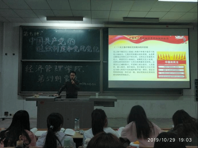 2019年10月31日晚7时,黄色短剧 第59期党校于教3-217教室进行了党课第八讲理论授课,为了进一步加深入党积极分子对党的理解和认识,提升党校学员的思想高度,本节党课由党委组织部赵伟奇老师为学员们以《放飞青春...