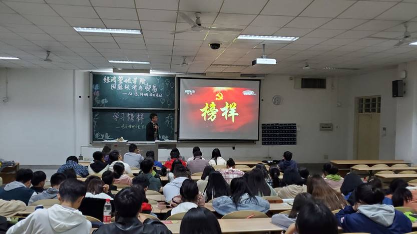 本次活动以班会的形式开展,活动内容丰富多彩。各团支部从《新闻联播》,《感动中国年度人物》以及《建国大业》等红色影视作品中寻找榜样的影子,由团支书和团员代表上台发言并分享心得体会。之后在活动中同学们对“生活中的榜样”等问题开展了积极自发的讨论。