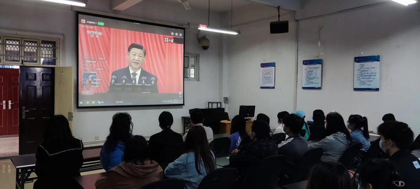 采用线上、线下相结合的方式,在教5-502、506、520和腾讯会议组织全体师生党员收听收看党的二十大开幕盛况,认真聆听以习近平总书记为代表的第十九届中央委员会向党的二十大作的工作报告。