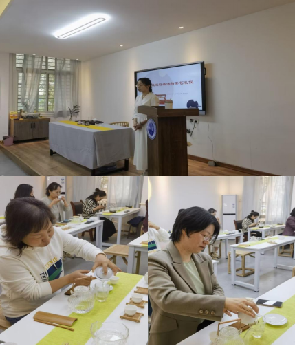 组织女教职工开展了“巾帼风采,雅致生活”茶艺体验活动。活动以“盖碗行茶法和茶艺礼仪”为主题,旨在学习茶艺的同时,了解并传播中国优秀传统文化,使女教职工从繁忙的工作中得到片刻放松,展现新时代女性自信、优雅的风采。