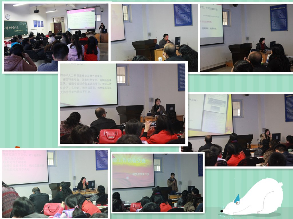 党委于2015年11月13日在教5—502教室召开了党支部工作培训暨优秀支部表彰大会。党委书记曲敏、副书记程新峰、院长李纯青、副院长苏兵及各支部书记和学生委员出席并参加了此次会议。
