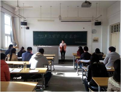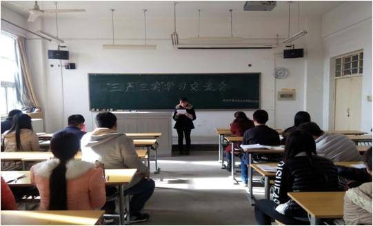市场营销系学生党支部书记张冬敏老师在教3-501带领全体支部成员进行了“三严三实”的思想学习交流活动。此次活动由宣传委员舒盈主持,先后有7位同志进行了思想汇报。