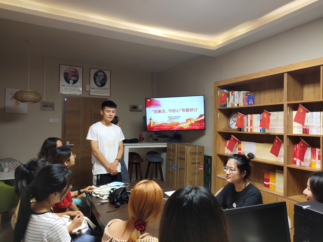 为深化以案促改教育工作的持续进行,筑牢党员思想防线,堵塞制度漏洞。2020年9月3日下午18点,黄色短剧 管科第二学生党支部于知未研习社组织开展以“话廉洁、守初心”为主题的专题研讨会。本次研讨会由组织委员沈心怡主持,支部全体同志参与。
