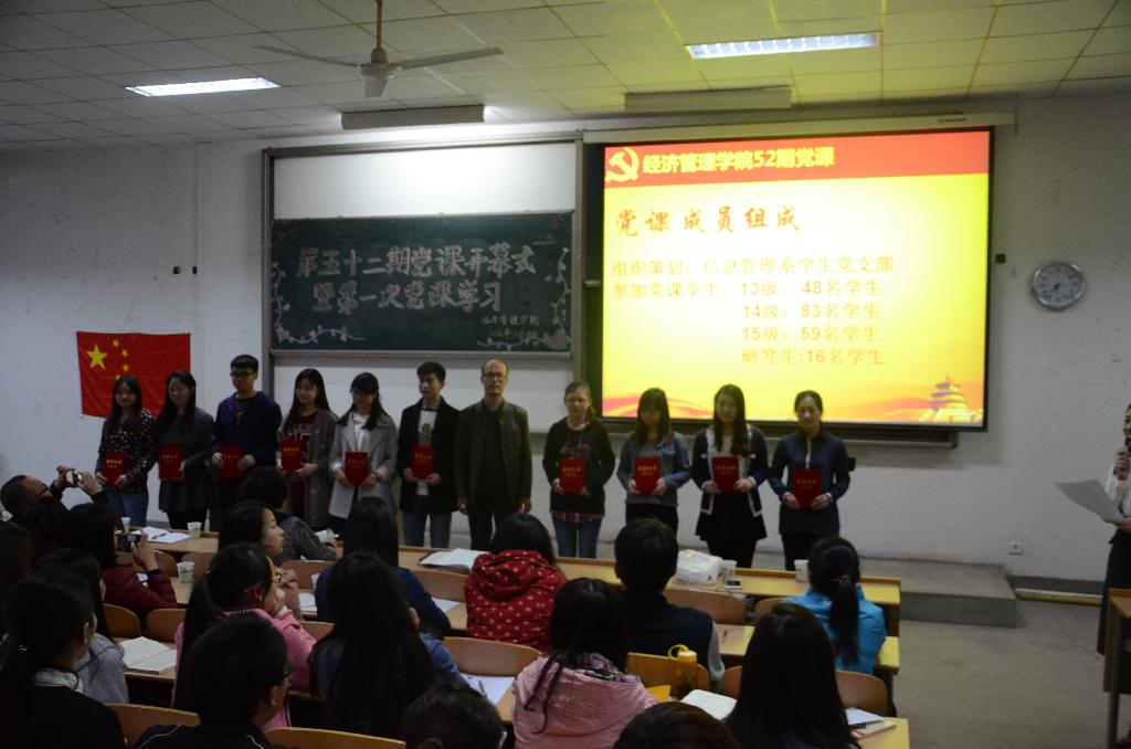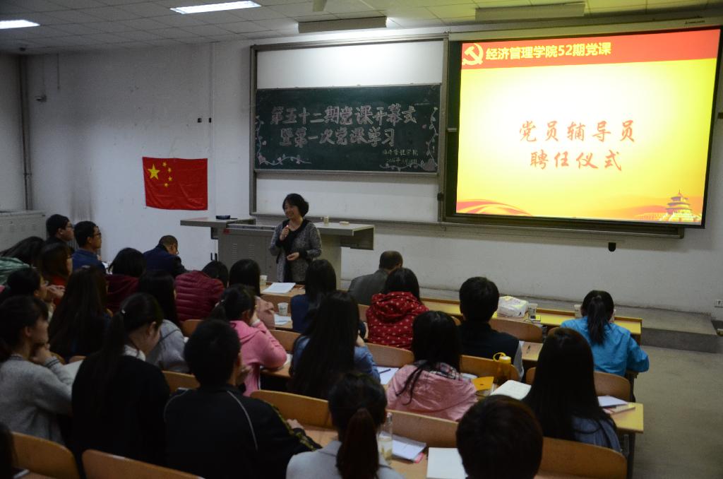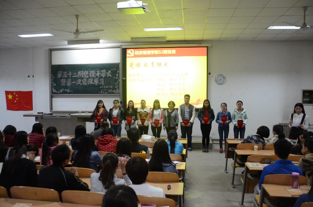 第五十二期党课培训开学典礼与第一次的党课培训。出席此次典礼的有党委书记曲敏、党委副书记程新峰,团委书记冯川川,以及各个学生支部书记。第五十二期全体党课学员及党员辅导员参加此次会议。