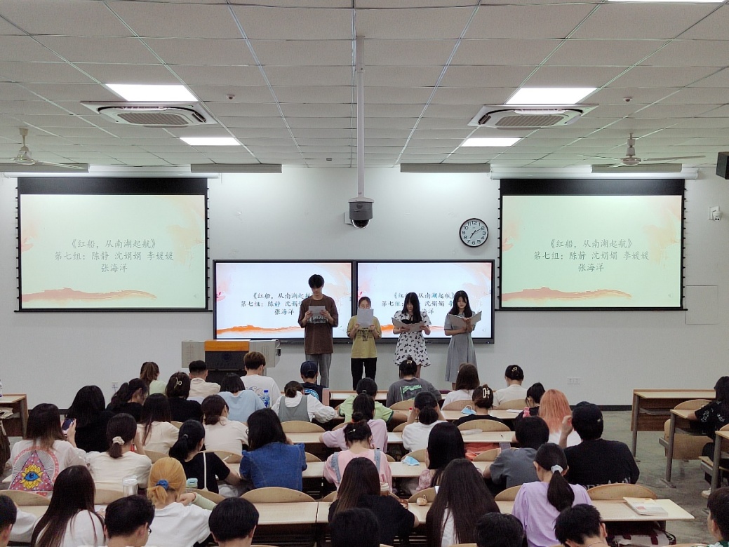 活动开始,由主持人朱淳熙公布比赛规则,然后进入正式比赛。本次活动共十组参赛队伍参加,组长通过抽签确定出场顺序。参赛队伍依次带来《党的赞歌》、《有一首歌》、《青春中国》、《百年征程共产党,不忘初心大唐人》、《可爱的中国》、《盛世中国》、《祖国啊,我亲爱的祖国》、《红船,从南湖起航》、《我心向党》和《祖国,我爱你》十首经典的红色诗词。所有队伍演出结束,由党校学员进行投票评选,第七组陈静 、沈娟娟、 李媛媛 、张海洋四名同学带来的《红船,从南湖起航》取得比赛一等奖。