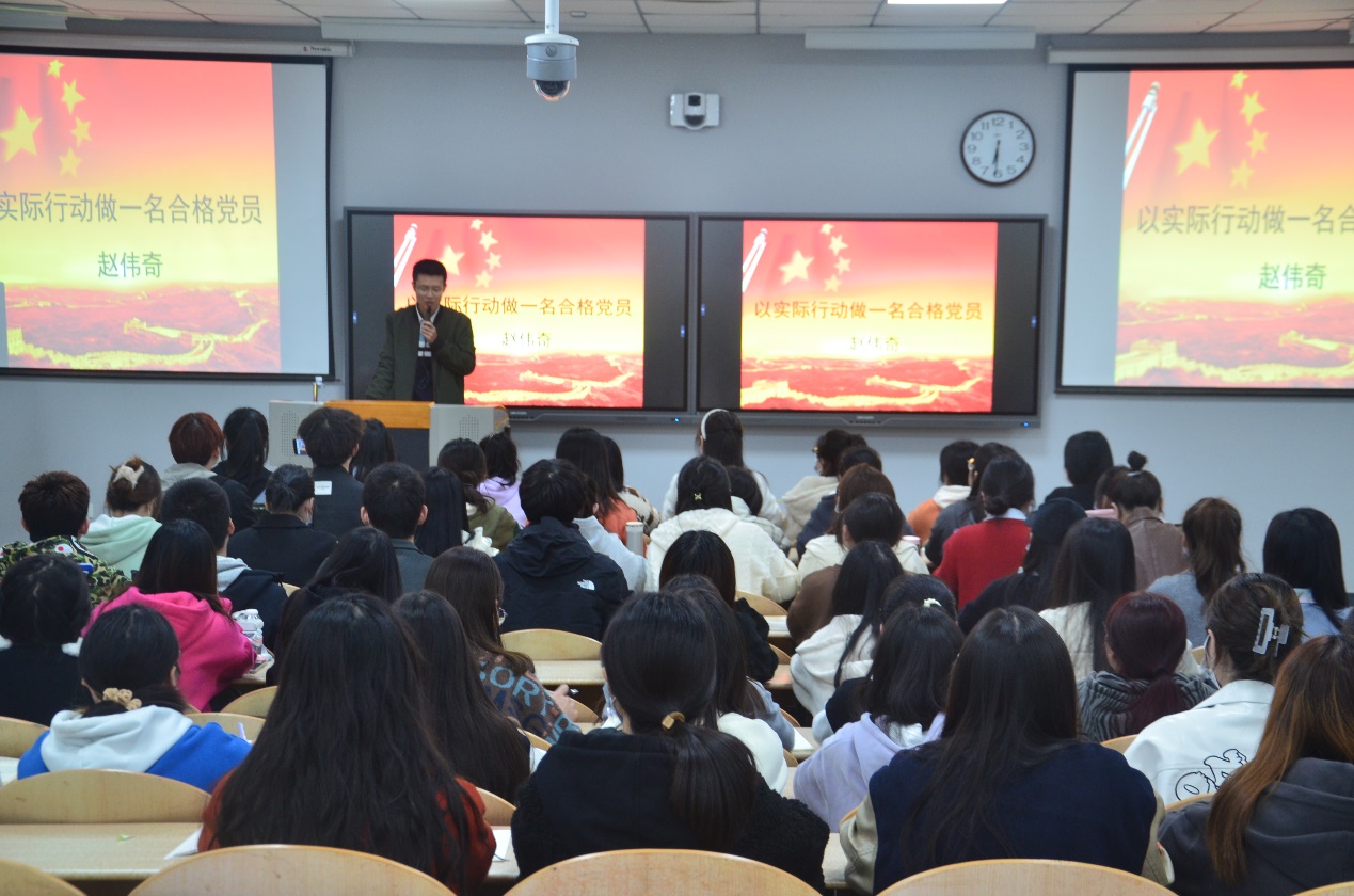 第65期分党校第三讲“放飞青春梦想,争做合格党员”于教2-203教室顺利开讲。本节党课由学校党委组织部老师赵伟奇为学员们展开授课指导,党校140余名学员参加。
