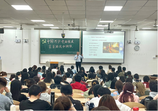 第66期分党校第四讲“中国共产党的性质、宗旨、路线和纲领”在教1-103开展,本次党课由党办校办主任何春水为120余名党课学员进行授课。