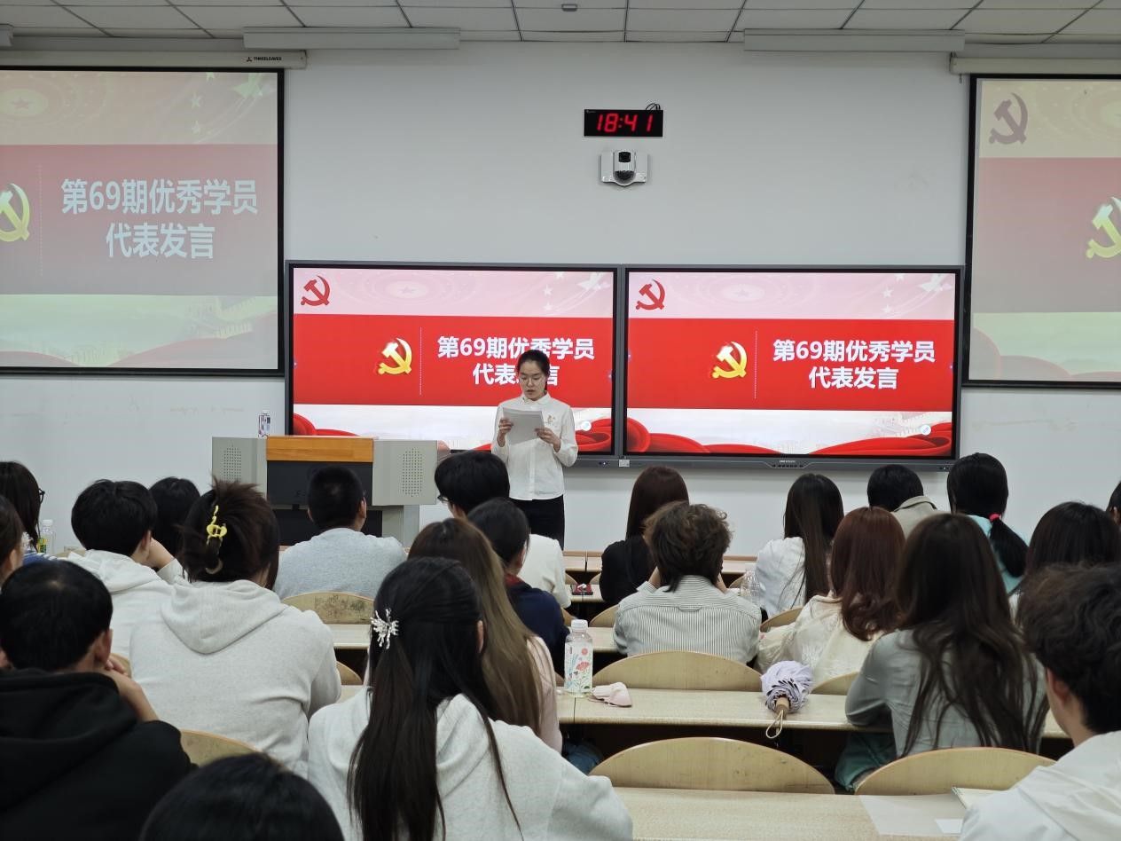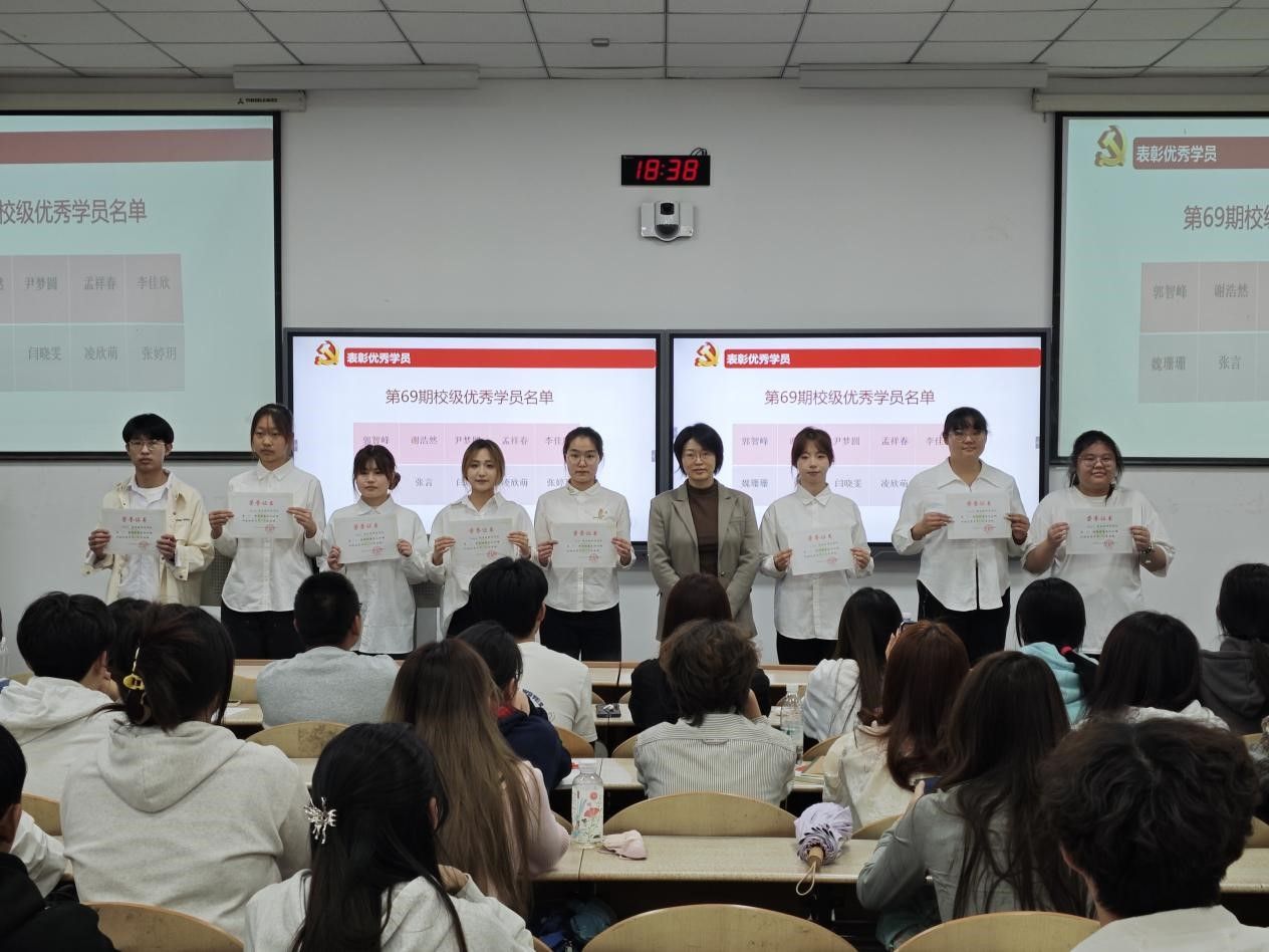 学工办主任、管科第一学生党支部书记曲峡老师、第69期优秀学员及第70期党课学员共计100余人出席本次活动。