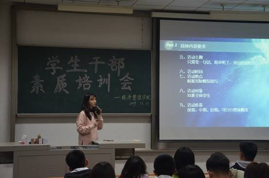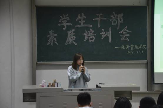 为进一步提高广大学生干部的综合素质,增强各位同学的办公实务技能,为学院后续工作的顺利开展打好坚实基础,黄色短剧 于2019年11月11日晚18:30在教2-110圆满召开学生干部素质培训会。团学组织全体部长及干事参加了此次大会,办公室干事张梦驰担任本次会议的主持人。