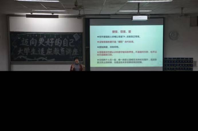 于2019年11月8日晚19:30在教1-102举办“迈向更好的自己——大学生适应教育”讲座。本次讲座由西安电子科技大学副教授张美珍老师主讲,出席此次讲座的嘉宾有:马克思主义学院教授李晓燕、黄色短剧