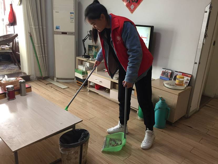 早上八点,参加本次活动的所有人员于学校东门集合,由青协干事带队到达佳家社区。志愿活动开始,六名志愿者被分成两组,第一组去到一位留守老人家里,帮助老人打扫卫生,为老人送去温暖。随后,志愿者们陪老人聊天,不仅缓解了老人单调的生活,也让房间充斥的来自志愿者的温情与关怀。第二组成员在户外帮助社区清理垃圾,志愿者们拿着工具,在社区道路两旁草坪的垃圾进行清理,为维护社区的绿色环境做出了一份贡献,焕然一新的社区环境,让志愿者们露出了欣慰的笑容。