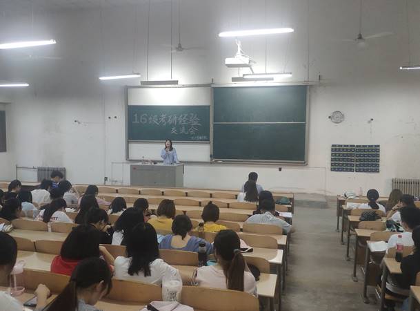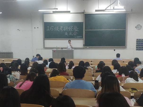 去年考研情况,并突出强调了学院对考研工作的高度重视。会议开始,今年考研取得优异成绩的7位学生15级的考研和公考成功的学长学姐依次上台发言并分享了对于考研和公考科目分享了自身备考经验,提供了相关教学视频、资料使用心得等,同学们受益良多。针对同学们提出的其他相关问题,会中7位考研的大四毕业生都逐一进行了耐心细致的解答,并结合自身体会,从多个方面分享了她们的备考经验。