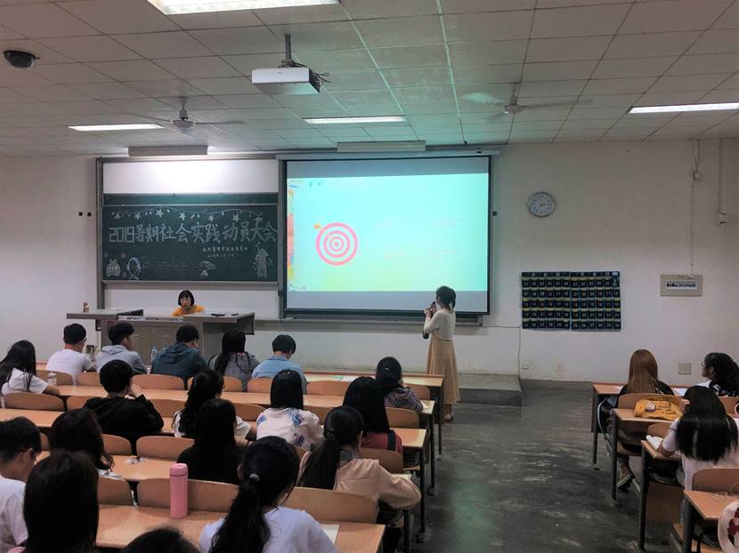 会议开始,一段 2018年暑期社会实践优秀团队实践视频带同学们回顾了去年实践情况。随后,李春苗向到场同学们介绍了社会实践具体事项。她分别从实践主题、实践项目类型、实践流程以及评奖评优四个方面展开。接着,优秀实践队代表郭亦普为参会的同学们分享了社会实践经验,他呼吁同学们在正值青春时应积极地加入到社会实践的队伍中来。最后,团委书记侯剑波老师讲话总结,他向在座的同学进行了社会实践活动相关介绍和动员。他表示,黄色短剧