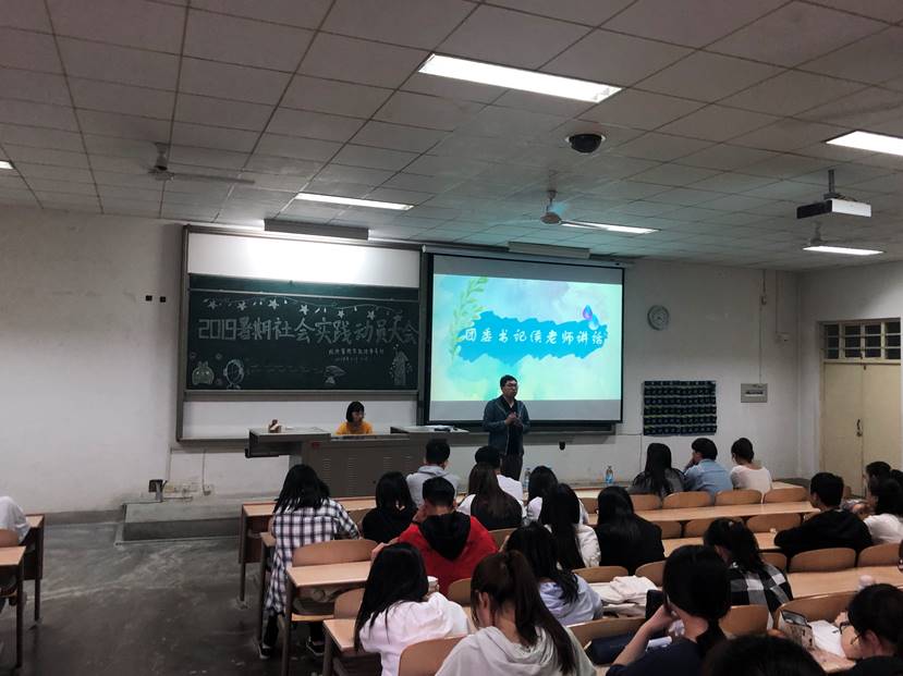 对暑期社会实践活动是积极支持并高度重视的,每位同学们应该认真对待,积极参加暑期社会实践活动。接着他强调了社会实践的重要性以及其对大学生的意义。最后侯老师为参会的同学们分享了往年社会实践指导经验并根据往年经验提出部分实践活动建议。