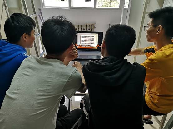马克思主义小组成员在知未研习社认真收看纪念五四运动100周年大会盛况。
