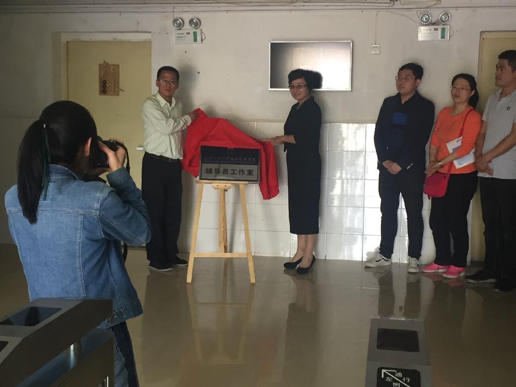 辅导员工作室”暨“知未研习社”揭牌仪式。学院党委书记曹玉玲教授,院长张弘教授、学院党委副书记程新峰老师出席仪式,全体辅导员及学生代表参加揭牌仪式,仪式由学院办公室主任陈燕老师主持。