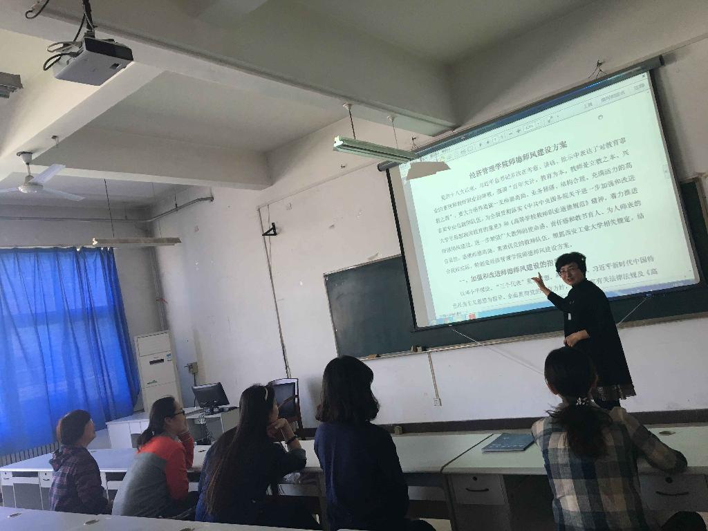 在教5-506会计手工实验室举行了全院教职工大会,此次会议由办公室主任陈燕主持,会上院长张弘、党委书记曹玉玲、教学副院长向海燕针对学院人才培养、学科建设、教学科研、师德师风建设、学生创新创业工作等方面作出了重要讲话。