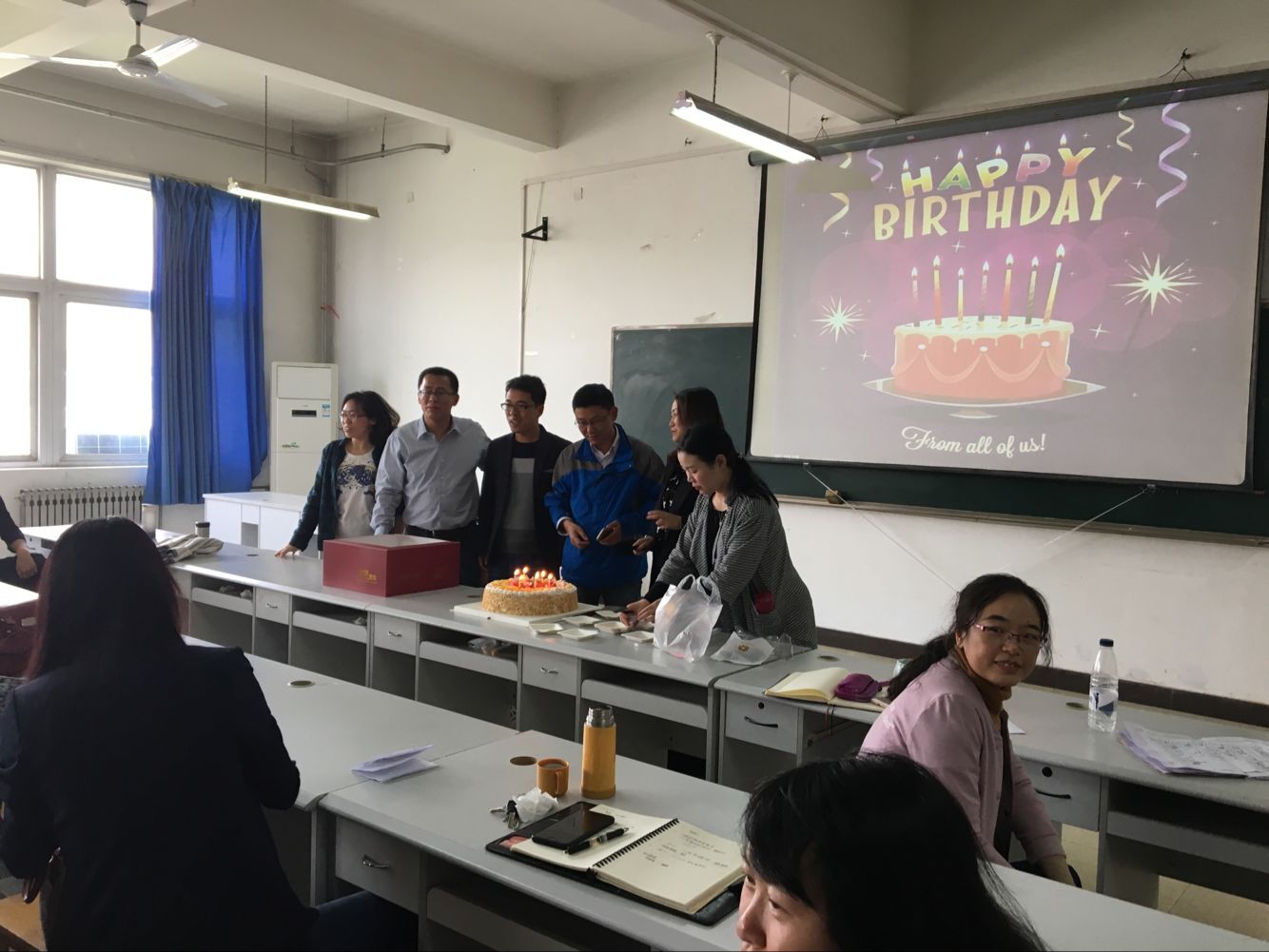 所有四月份生辰的老师召开了一个集体生日会。