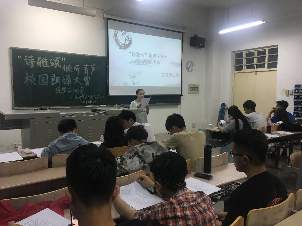举办的 “诗雅颂·倾听青声朗诵大赛”初赛在教3-305成功举办。出席本次初赛的评委有:学院学生会学习部部长王沛东、副部长刘畅,外联部副部长王旭东和生活部副部长冯小雪。