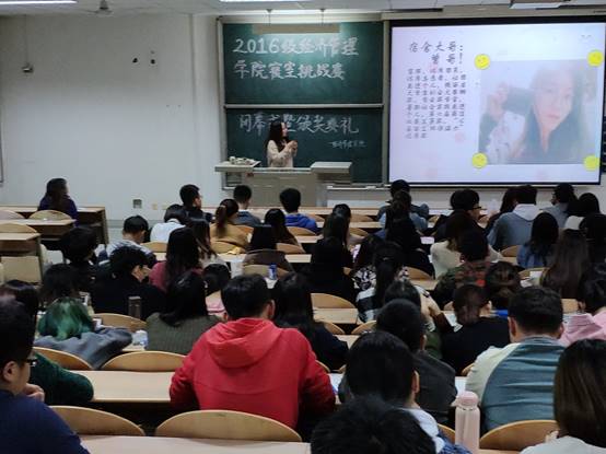 在教2-209举行2016级寝室挑战赛闭幕仪式,由辅导员周晨老师主持,2016级全体宿舍长和班长参加了此次大会。