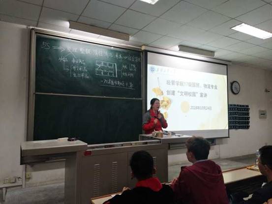 曲峡老师为17级国贸、物流专业学生在教2-305举办了创建“文明校园”的宣讲会。