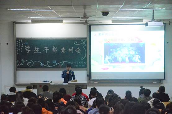 于11月6日晚18:30在教1-303举行学生干部培训会。团学组织各部门部长及全体干事参加了此次大会,办公室王唯一担任本次会议的主持人。