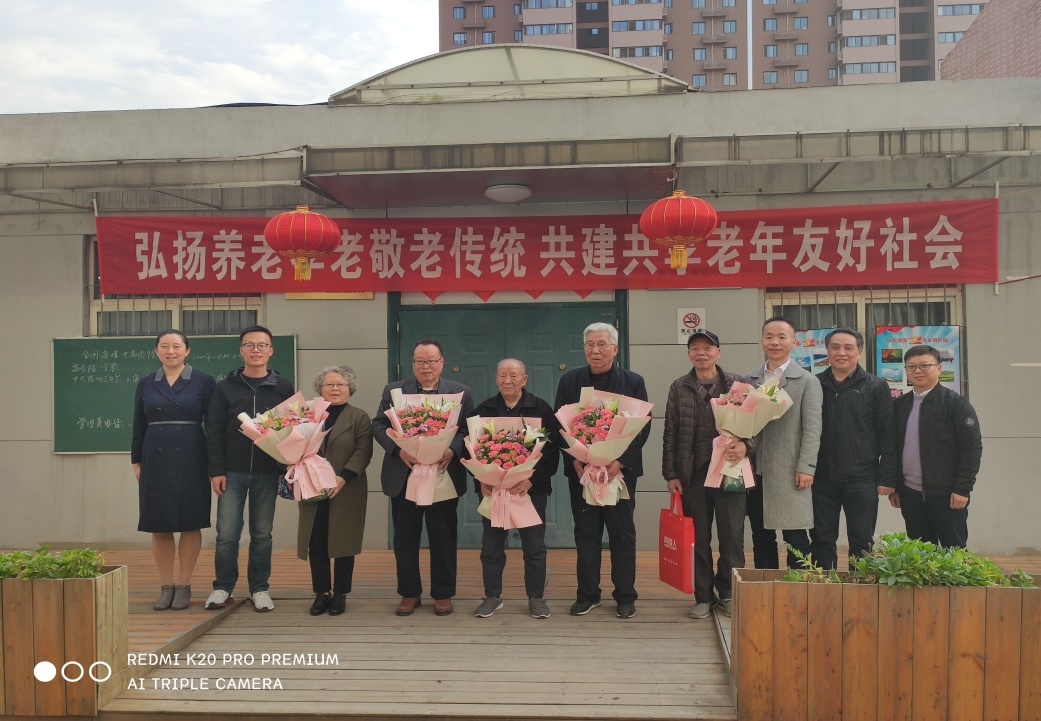 各项事业追赶超越新篇章。最后,参会领导为离退休教师献花并合影留念。
