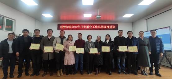 2019-2020学年招生就业工作总结”,他结合近三年数据,联系当前实际对近三年的招生就业工作做了全面梳理,并对2021年招生就业工作做了详细部署安排。随后,姬浩代表学院党委宣读了《关于对李明等10名招生就业工作先进个人的表彰决定》,并由苏兵颁奖。颁奖结束由先进个人代表李育英做了代表发言。