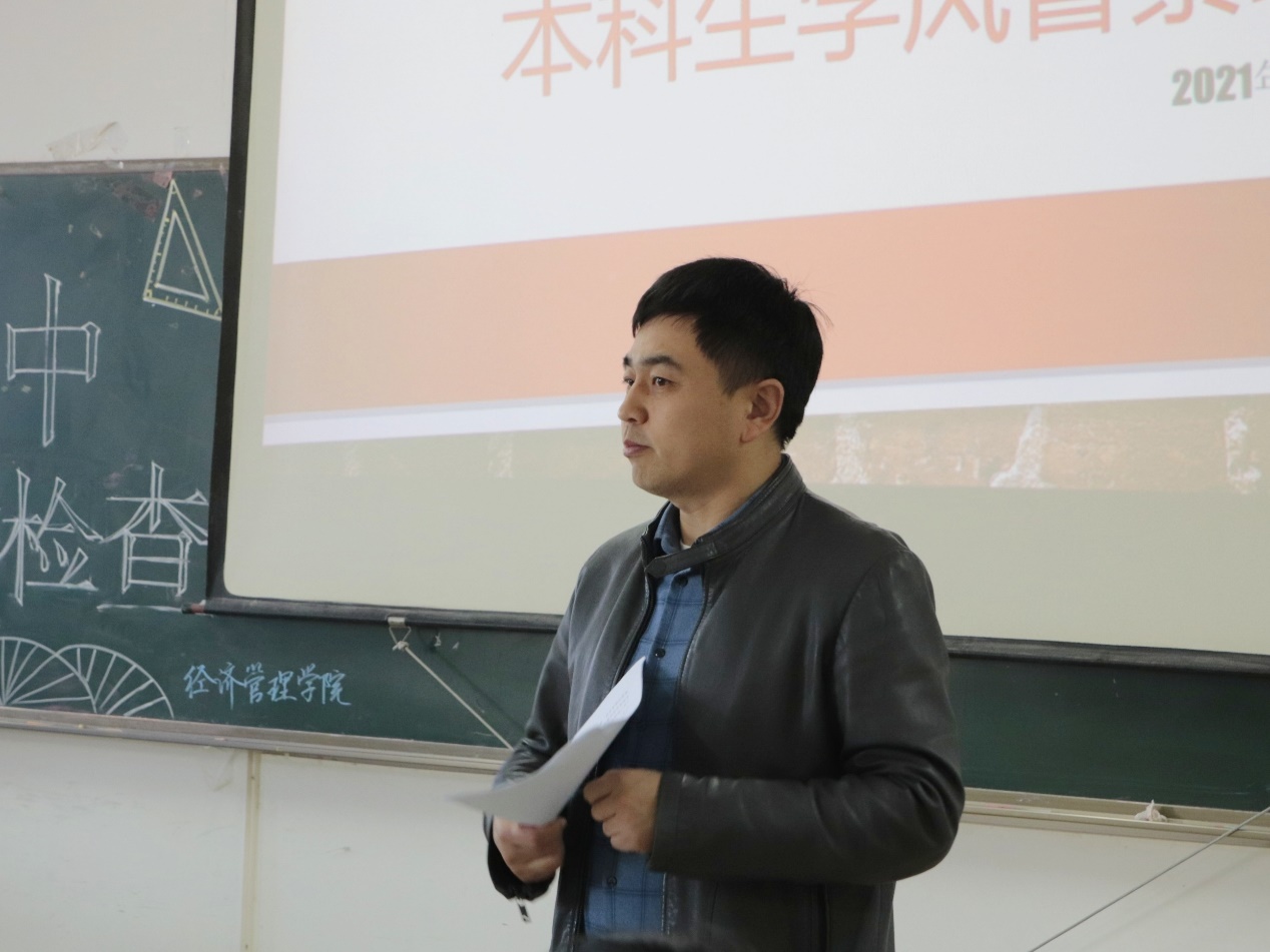 本科生学风督查组,他强调要保证学风,如实汇报,要不断促进学院的学风建设,推动学院教学的内涵发展和教学服务水平的进一步提升。