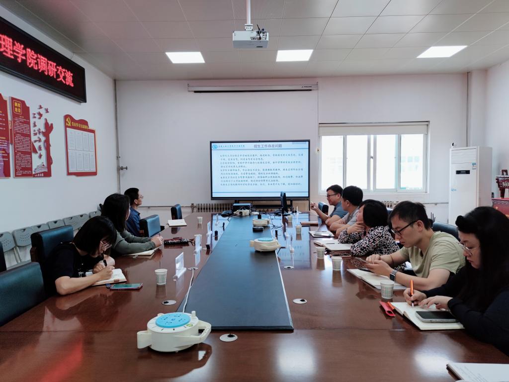 招生和考研工作的指导与帮助表示衷心感谢。随后,冯川川从招生工作组织架构、具体工作内容、存在问题等方面介绍了学院招生宣传相关工作。王育晓总结了学院近三年的考研工作,汇报了近期对2023届毕业生考研意向和预报名摸底的两轮调查结果,并针对目前存在的不足和问题,提出解决思路。全体与会人员就下一步招生和考研工作的方式方法、思路措施各抒己见、献计献策,整个会议气氛融洽热烈。