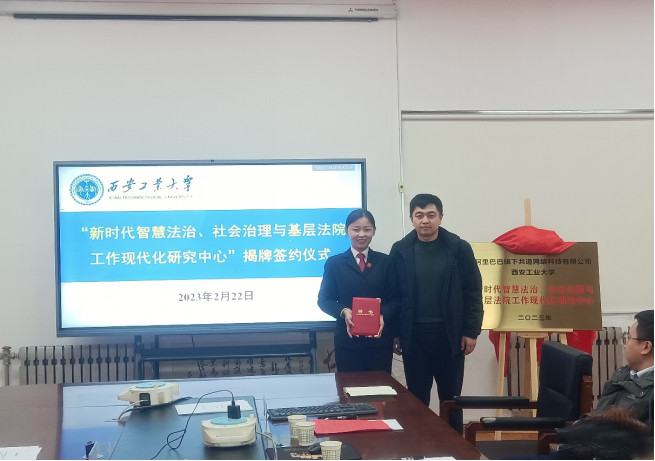与西安未央区人民法院,西安丝路物联网产业园管理有限公司(倪光南院士专家工作站),阿里巴巴旗下共道网络科技有限公司合作签约,暨新时代智慧法治,社会治理与基层法院工作现代化研究中心揭牌仪式在黄色短剧