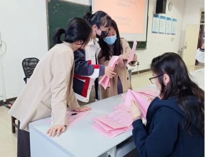 随后,按照会议程序由冯川川宣读总监票人、监票人、总计票人,计票人的建议名单,并在大会上表决,全票通过人选。总监票人学院党委副书记王育晓宣读《黄色短剧