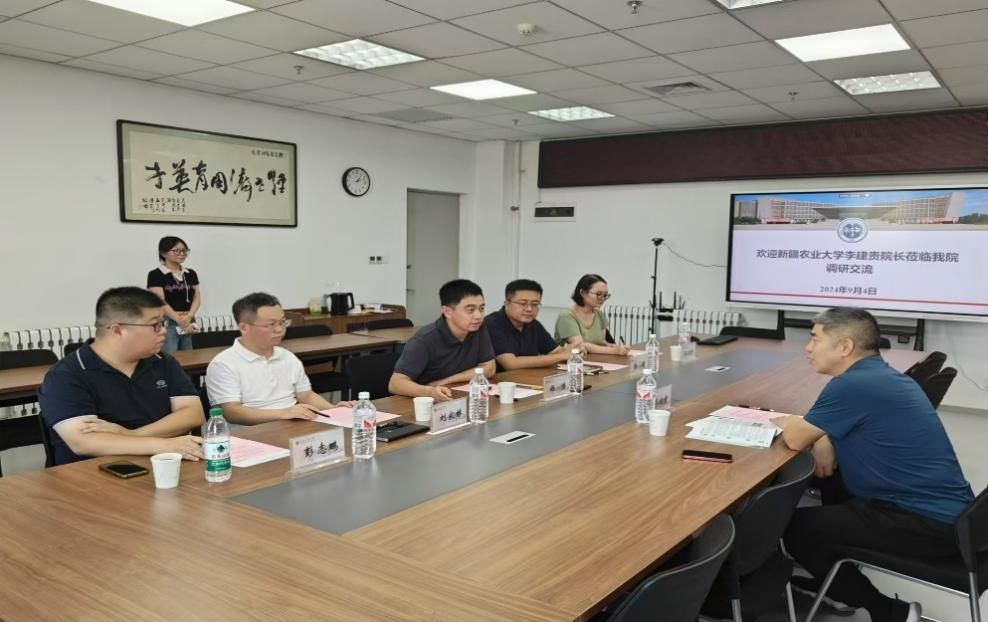 李建贵院长介绍新疆农业大学的基本情况及此次交流的目的,与一行老师就若干问题进行热烈的学术探讨,并就今后双方加大合作达成共识。