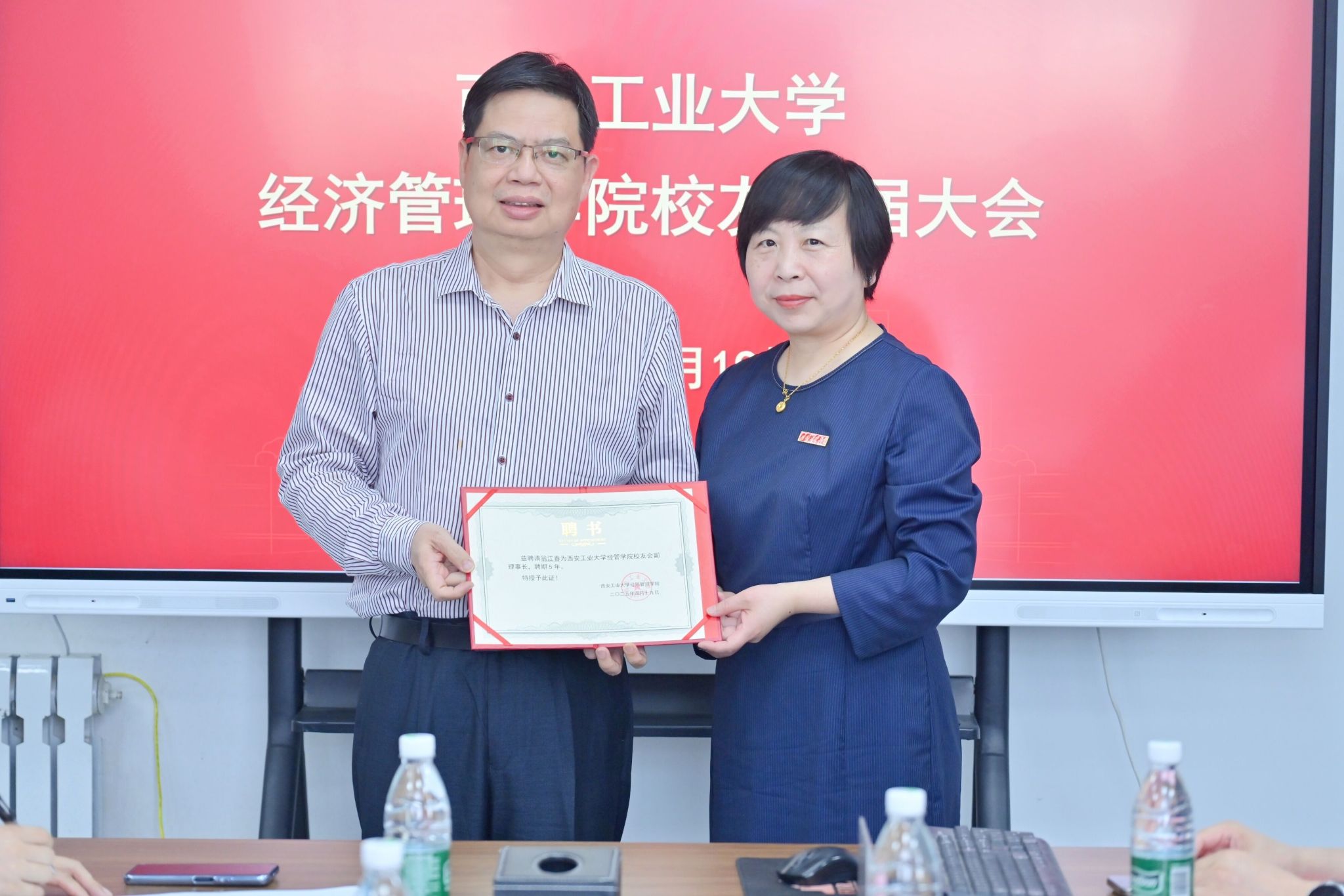 党委书记、学院上届校友会理事长王育晓深情回顾了过去几年的校友工作,从搭建交流平台到推动校友合作,从服务地方发展到助力母校“双一流”建设,一串串数据、一个个案例赢得全场热烈掌声。会议表决通过了学院校友会新一届理事会及秘书处建议名单。王育晓为新一届理事会副理事长赵伟荣、颜军、翁江春、陈小庆、李前颁发聘书,新一届理事会副理事长分批为理事颁发聘书。