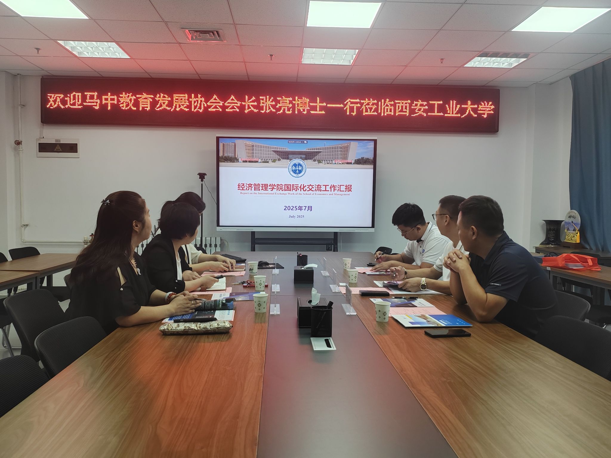 ,双方在教 9-529 会议室举行交流座谈,就教育合作与国际交流等事宜深入交换意见。马来西亚中国教育发展协会会长 Prof.Dr Jacky Zhang Liang(张亮博士)、中国事务与发展部主任 Kyle(张凯)、西安服务中心主任张国强,黄色短剧