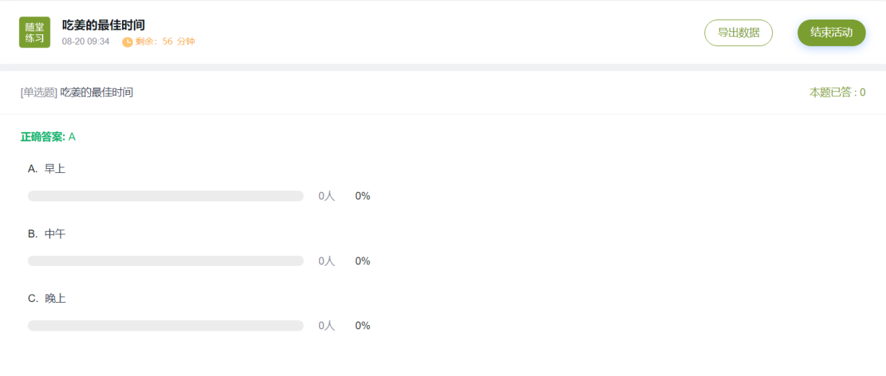 点开正在进行的活动,可以看到学生作答结果,继而做出活动点评。