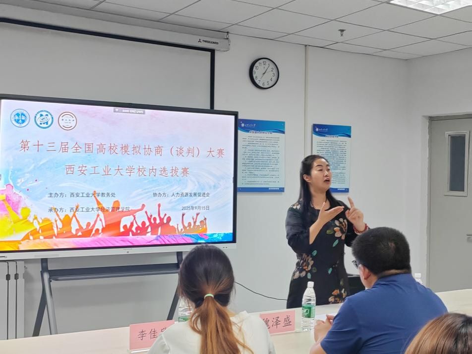 第十三届全国高校模拟集体协商(谈判)大赛校内选拔赛决赛于2025年9月18日晚举行。两组选手都有着十分优异的表现,经过激烈的角逐,评委们根据选手的谈判表现、策略运用、专业知识等多个维度进行综合评分,其中张歌等3人获得一等奖,张晓燕等5位同学获得二等奖,郝娇娇等8名同学获得三等奖。