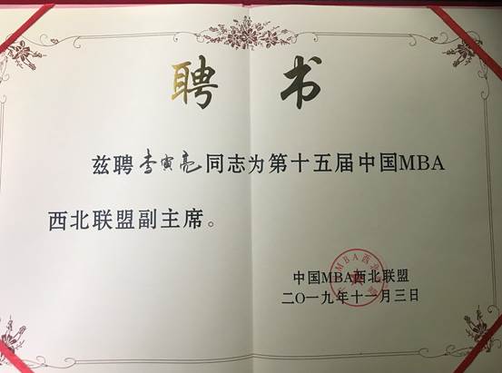 MBA联合会主席李寅亮被聘为第十五届中国MBA西北联盟副主席。