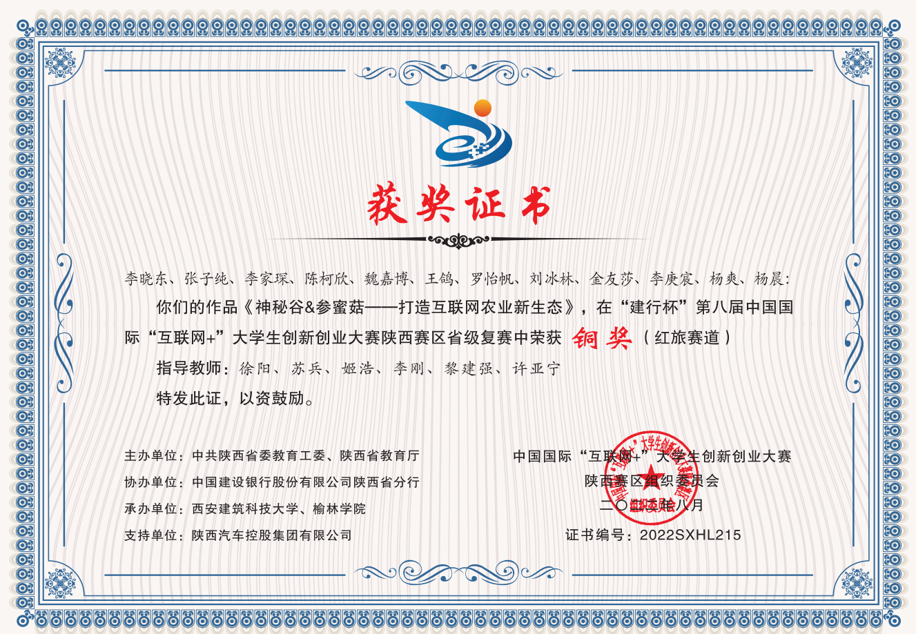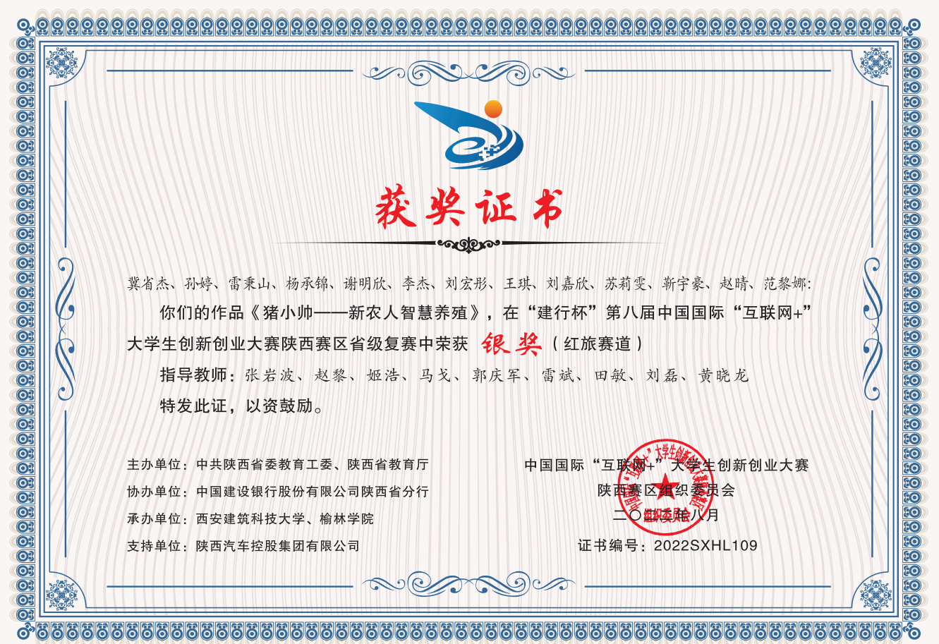 在陕西赛区省级复赛中再获佳绩。其中,徐阳、苏兵、姬浩等老师共同指导的《神秘谷&参蜜菇——打造互联网农业新生态》作品,荣获红旅赛道省级铜奖;姬浩、马戈、田敏等老师参与指导的《猪小帅——新农人智慧养殖》作品,荣获红旅赛道省级银奖。