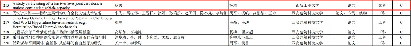 硕士研究生杨爽论文成果《A study on the siting of urban two-level joint distribution stations considering vehicle capacity》荣获C档奖项,指导教师为姬浩教授。