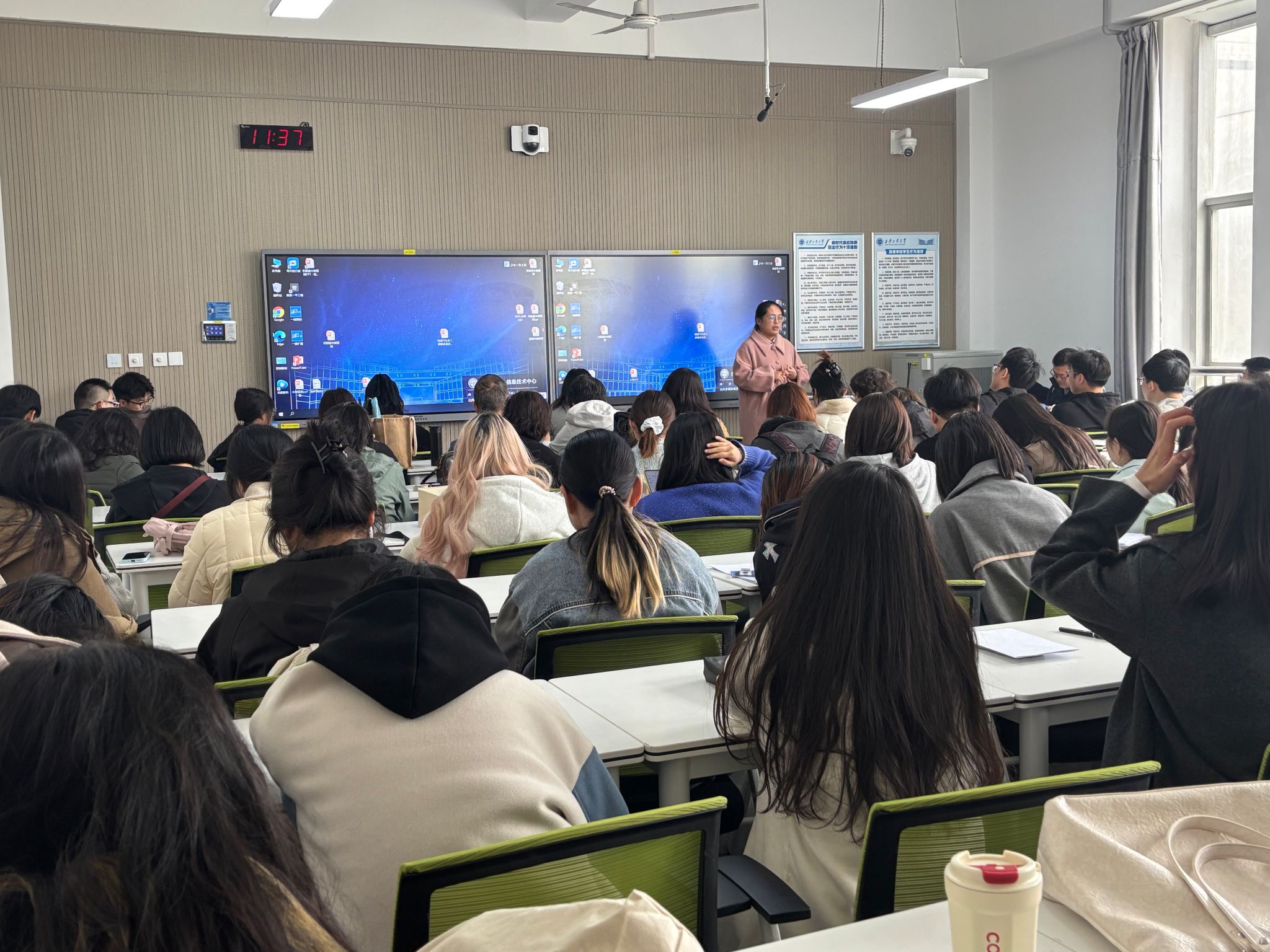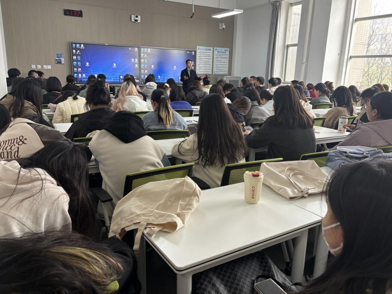 其次,辅导员孙会结合近年就业数据,系统分析了人力资源管理专业就业去向及行业分布特点,为学生提供个性化指导。此外,她提醒毕业生关注考研、考公与求职的平衡策略,避免“盲目跟风”。