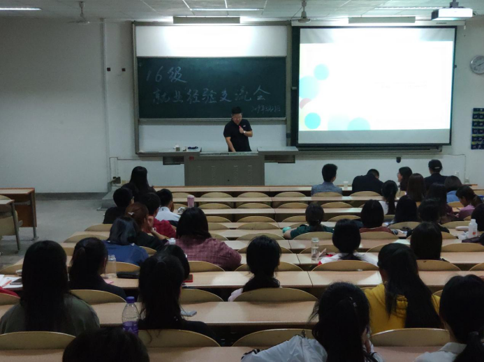 会议开始,由往届优秀学长学姐依次上台发言分享了自身就业经验,在现在从事的事业角度为同学们剖析了关于简历制作,求职方向、求职态度和就业观等同学门现在或未来将会面临的一系列问题,并给出自己独到的见解。接着,在提问环节,在场学长学姐一一解答了同学们关于就业和择业问题,让同学们受益匪浅。