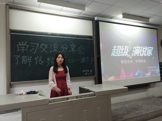 16050518班于6月5日18:00在教二202教室举行了以“学习交流分享会、了解中国传统节日“端午节””为主题的学习经验分享会。