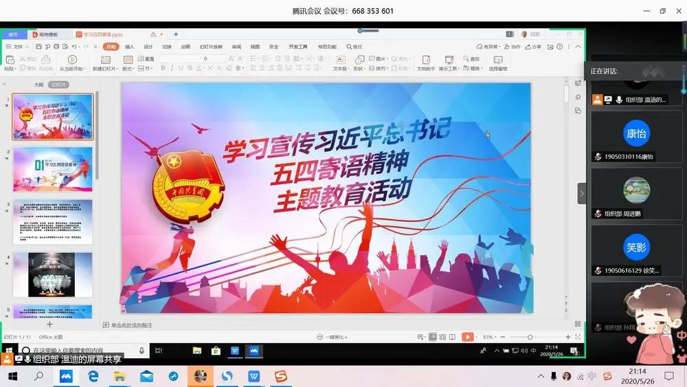 活动伊始,由团委书记许金鑫带领学习习近平总书记五四寄语和相关讲话:“青年一代有理想、有本领、有担当,国家就有前途,民族就有希望;广大青年要不惧风雨、勇挑重担,让青春在党和人民最需要的地方绽放绚丽之花;新时代中国青年要继承和发扬五四精神,坚定理想信念,站稳人民立场,练就过硬本领,投身强国伟业,始终保持艰苦奋斗的前进姿态,同亿万人民一道,在实现中华民族伟大复兴中国梦的新长征路上奋勇搏击。”这都是习近平总书记对中国青年的鼓励和厚望,更重要的是需要将这种精神落到实处,用青年的蓬勃活力推动祖国明日之腾飞,用认真严谨的态度去应对不测之风云,这是时代赋予中国青年的历史使命,更是每一名经管学子义无反顾的奋斗方向。