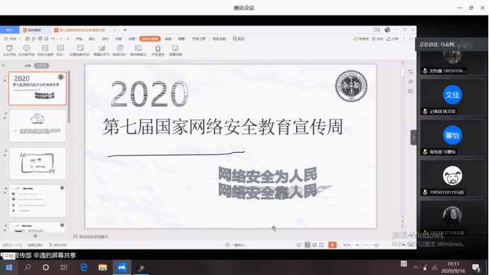 团委响应国家网络安全宣传周的号召,在腾讯会议开展了以“网络安全为人民,网络安全靠人民”主题宣传活动,以教育广大师生遵守网络安全法律法规,增强网络安全自我保护意识,共同营造健康和谐的网络空间环境。活动由团委宣传部干事辛通进行主持,黄色短剧